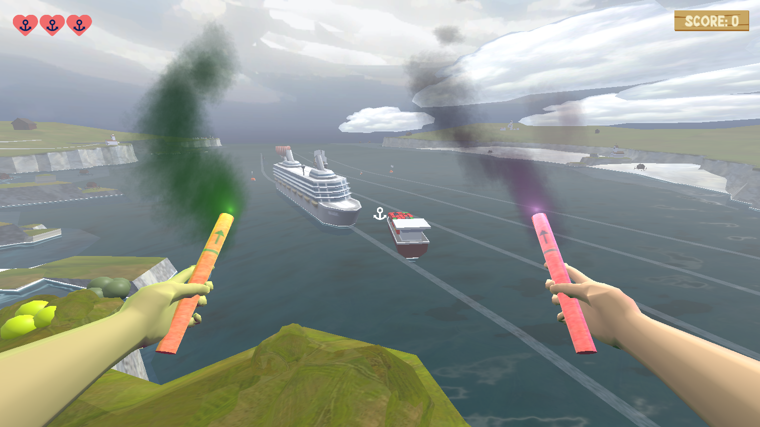 - Once a ship has exited the area marked with buoys to the opposite side it came from, you will be awarded one point.